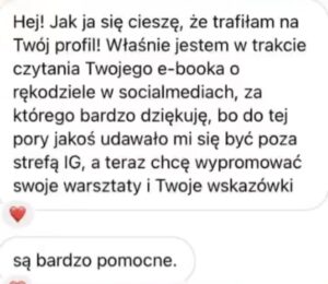 Ogromna, gigantycznie ogromna dawka wiedzy i doświadczenia Autorki! 🙂 Podana w sposób wręcz przyjacielski (bo przejrzysty to za mało powiedziane). Z przykładami, z pomysłami, z instrukcjami krok po kroku. Polecam wszystkim! Biorę się do pracy i po lekturze... chyba przekonam się do Facebooka 😉