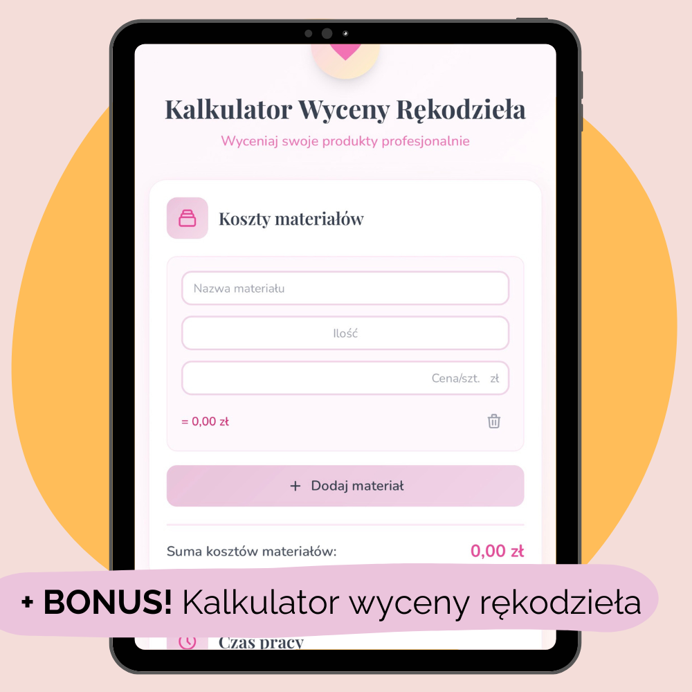 Wraz z e-bookiem otrzymasz darmowy bonus – kalkulator wyceny rękodzieła!